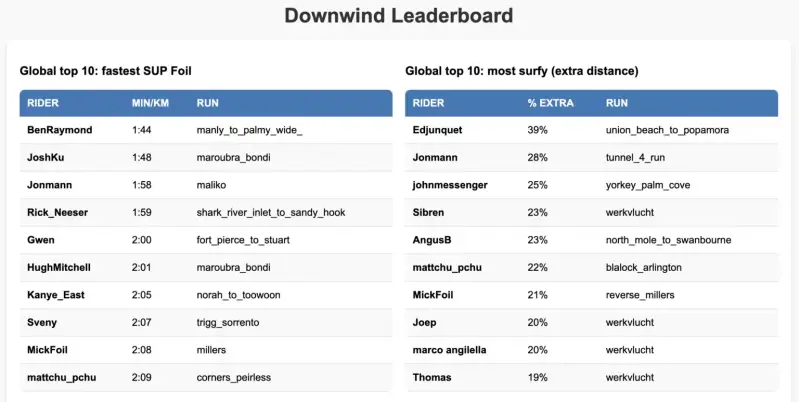 So you may have seen me posting on instagram about a leaderboard site (https://race.downwind.app/) that my buddy Sibren built. Originally it started as a leaderboard for a part of a local run for a bit of fun, but Sibren quickly realised that this leaderboard was scaleable and we started adding more runs globally (first through our network, and now by promoting it more on social media). This blog post aims to go through some of the ‘basics’ about the leaderboard – but in general we hope that it drives community engagement in all the various DW locations, a bit of friendly rivalry and can possibly even end up as a tool for local events or challenges.