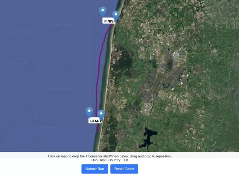 When suggesting a run, you are required to upload at least 1 GPX file (though uploading more, if you get GPX files from your buddies, can help you be sure to set the gates right). This then plots the course on the map and helps you decide where to draw the gates (click to place the 2 start buoys and 2 finish buoys, you can move these around). We recommend putting the start gate a decent bit downwind to give as many people a chance of having a flying start for the section (not everyone pops up first thing at the start). Finish gates can be closer to the finish. Ensure they are also wide enough, especially if the section of the run is one that overlaps with / or is part of another run. That way you can have it as a common section. It is worth noting – the GPX file you upload to create the course does not automatically go onto the leaderboard. This is because you may have used someone else’s GPX to create the course. So once the course is approved – you will have to upload your file to feature on the leaderboard.